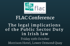 FLAC hosted a significant one day conference on the legal implications of the public sector duty in Dublin on Friday 19th October. It was the first conference on the legal implication of this new duty, and the aim of the conference, which was chaired by Journalist Vincent Browne, was to enhance awareness and understanding of the public sector duty amongst lawyers, NGOs, trade unions and the public sector.