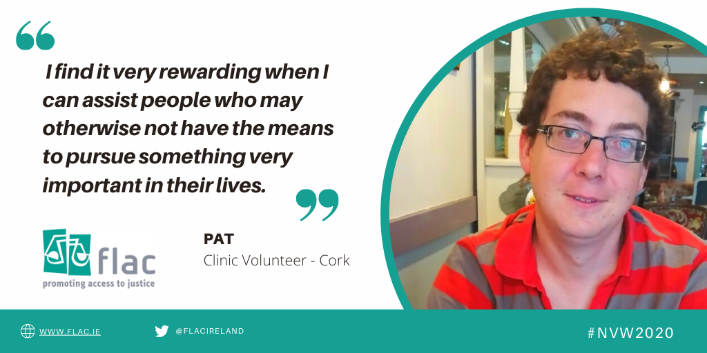 I generally volunteer one evening a month, from 6.30 until 8pm. It’s very different to the day job. The Cork Clinic is a general law clinic and there’s great variety in the queries. I once had a woman ask me about the legality of exhuming human remains! Now that was something I hadn’t come across before. It was a genuine query but I was thrown at the time!