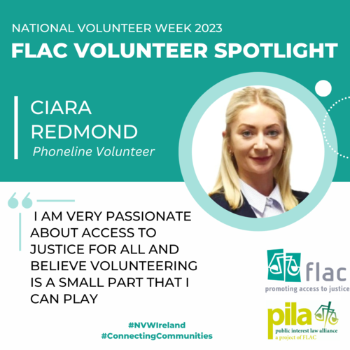 This year’s National Volunteering Week theme is ‘#ConnectingCommunities’ We begin #NVWIreland by spotlighting one of FLAC’s Telephone Information Line Volunteers. Ciara Redmond first began volunteering in 2017 as a trainee solicitor.