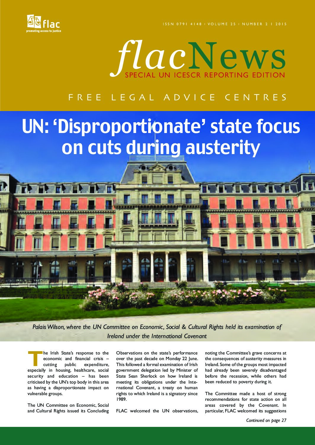 FLAC News 25 (2) Apr-Jun 2015. Special UN ICESCR reporting edition