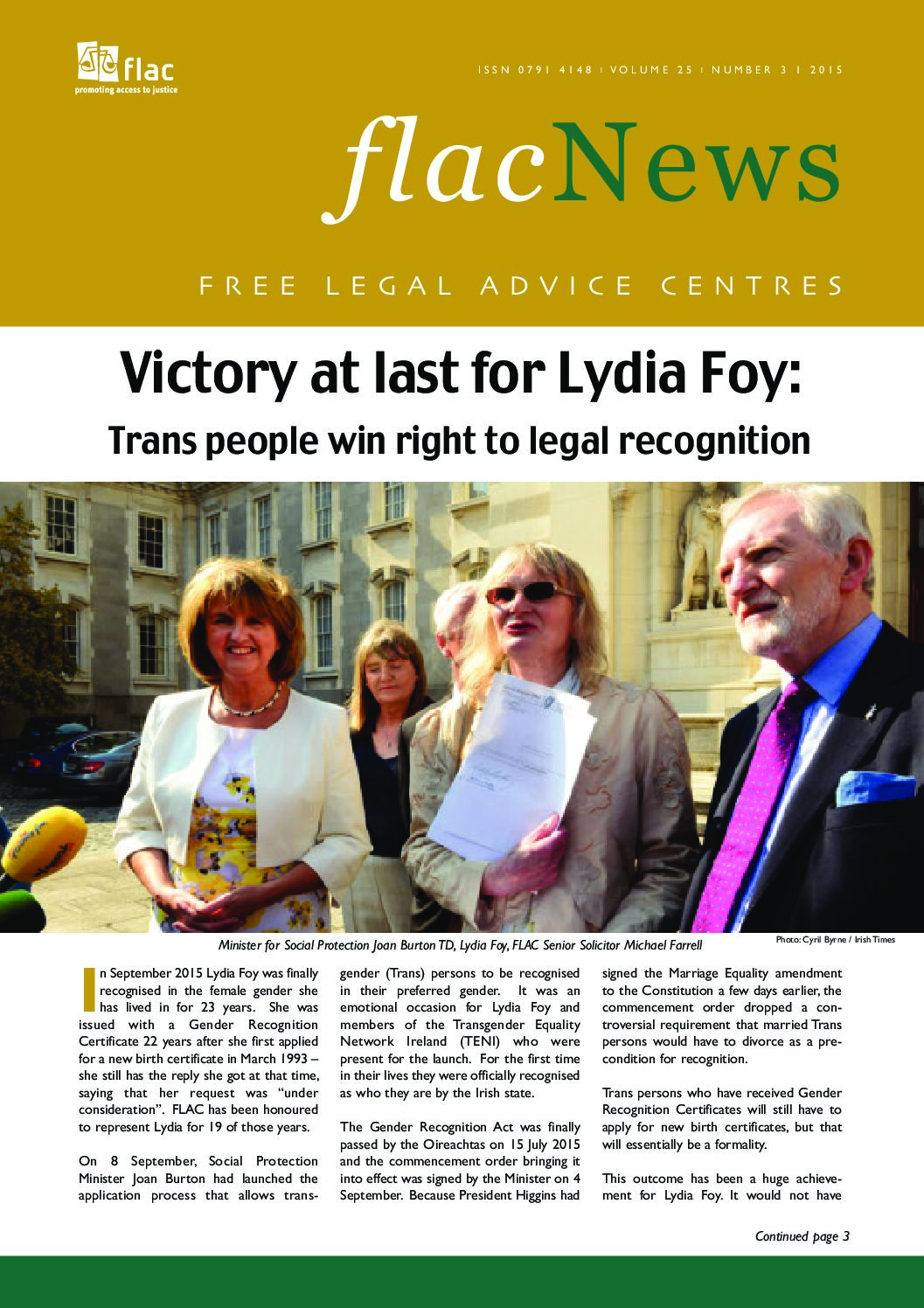 • Victory at last for Lydia Foy:Trans people win right to legal recognition