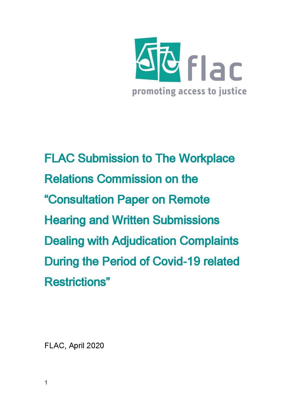 FLAC Submission to The Workplace Relations Commission on the “Consultation Paper on Remote Hearing and Written Submissions Dealing with Adjudication Complaints During the Period of Covid-19 related Restrictions”