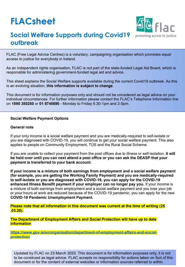 FLACsheet Social Welfare Supports during Covid19 outbreak