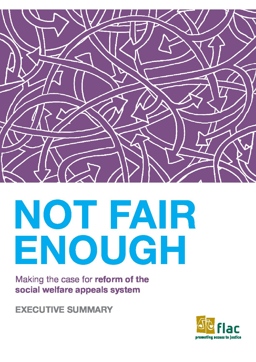 NOT FAIR ENOUGH sets out the operation of the Social Welfare Appeals Office and charts the increase in the workload of the office as well as looking at the challenges facing it in terms of limited resources and delays. The report also summarises some of the main difficulties facing appellants and their advocates when they come into contact with the appeals system. These include the perceived lack of independence of the Appeals Office as a section of the Department of Social Protection, as well as the need for greater transparency, consistency and even-handedness. FLAC examines the process in light of domestic and international human rights law to which the State is committed even in times of austerity. The report outlines various perspectives on the appeals system, from advocates representing clients at appeal stage to the views of the Chief Appeals Officer on behalf of the Appeals Office. FLAC makes the case for reform of this key institution which plays an ever more critical role as more and more people seek state support in a fair and timely manner.