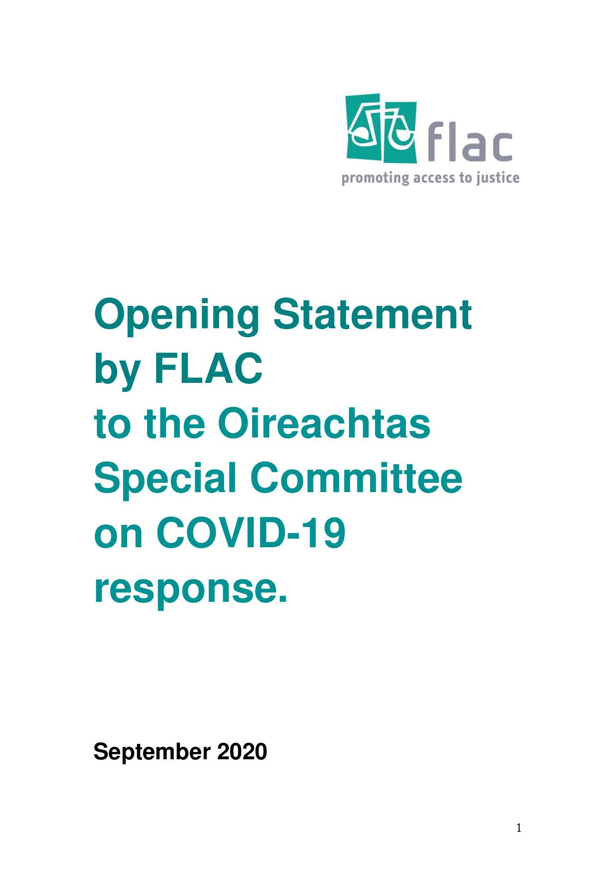 Opening Statement by FLAC to the Oireachtas Special Committee on COVID-19 response