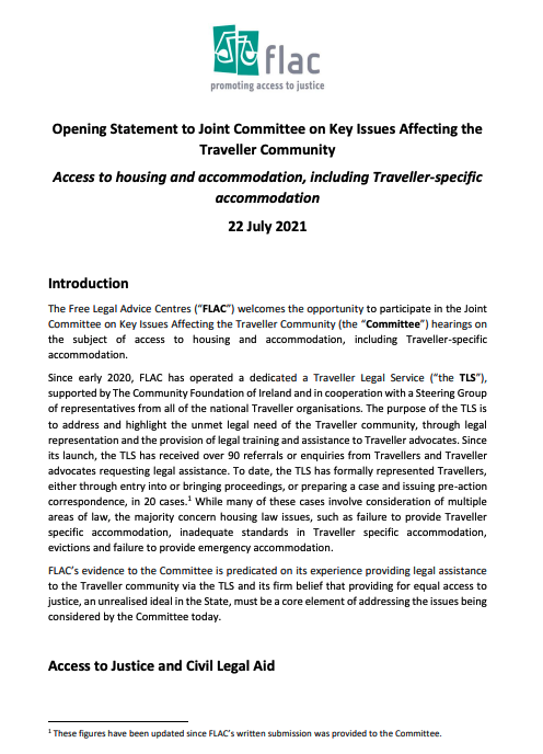 Opening Statement to Joint Committee on Key Issues Affecting the Traveller Community Access to housing and accommodation, including Traveller-specific accommodation