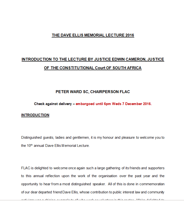Peter Ward remarks at 10th Annual Dave Ellis lecture