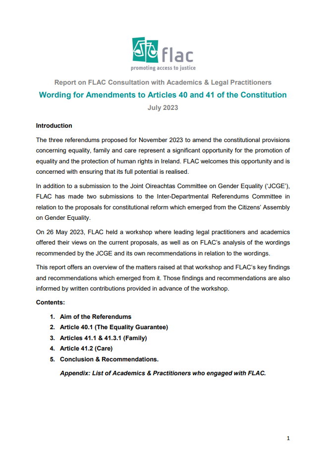 Report on FLAC Consultation with Academics & Legal Practitioners on Wording for Amendments to Articles 40 and 41 of the Constitution