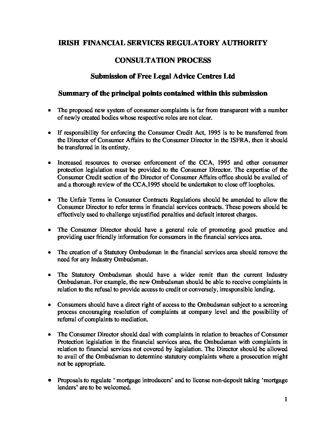Submission on the Establishment of the Irish Financial Services Regulatory Authority