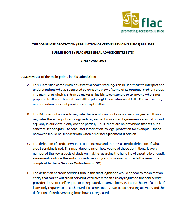 SUBMISSION BY FLAC (FREE LEGAL ADVICE CENTRES LTD)